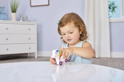 Igračka ima žarke boje i razigran vizualni stil koji zaokuplja djecu i potiče njihovu maštu.