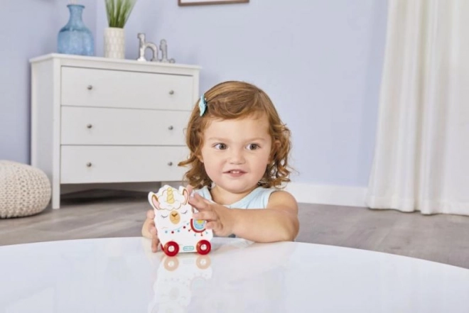 Igračka je opremljena s četiri funkcionalna kotačića koji omogućuju lako rukovanje i kretanje. Idealna je za razvoj grube motorike i mašte djece već od 12 mjeseci.
