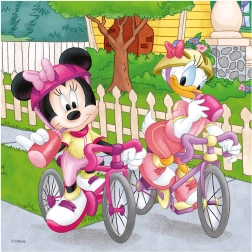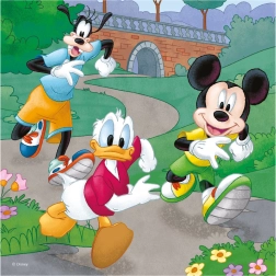 Otkrijte čar slaganja s omiljenim likovima DISNEYA. Set od tri puzzle s po 55 dijelova donosi sportske avanture MICKEYJA, MINNIE i njihovih prijatelja – trčanje, košarku i vožnju bicikla. Djeca će pri slaganju uvježbati strpljenje, logičko razmišljanje i koordinaciju oko–ruka.