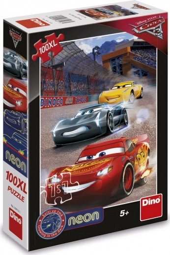 Neonske puzzle CARS 3 sa 100 XL dijelova svijetle u mraku. Kvalitetan, siguran karton, proizvedeno u Češkoj. Idealno za djecu od 5 godina, razvija motoriku i pažnju.