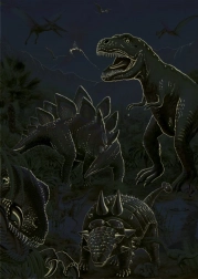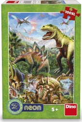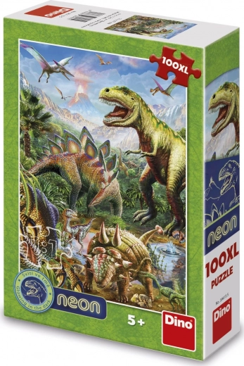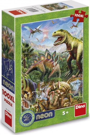 Otkrivajte svijet dinosaura uz ovu nevjerojatnu neon puzzle! Vaše dijete će uživati u zabavnom slaganju s neonskim elementima koji svijetle u mraku i prikazuju obrise dinosaura zajedno s dramatičnim planinskim krajolikom u pozadini.