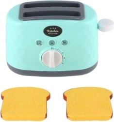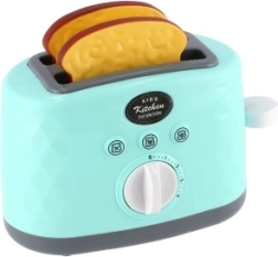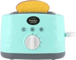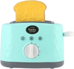 Toster u tirkiznoj boji s realističnim funkcijama tipki i mehanikom za uključivanje dječjeg interesa.