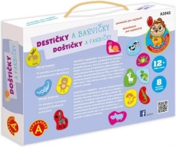 - Velike šarene pločice sa slikama, upute na češkom i slovačkom, kutija s ručkom