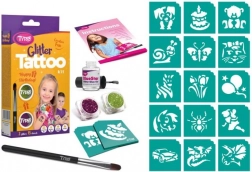 Stvorite jedinstvenu atmosferu na rođendanskoj zabavi sa svjetlucavim tetovažama TyToo Happy Birthday. Set sadrži 15 šablona veselih motiva i 2 boje šljokica koje na koži traju otprilike 8–18 dana. Tetovaže su vodootporne, ali se lako uklanjaju alkoholom ili dječjim uljem. Gotove motive možete dodatno ukrasiti samoljepljivim kamenčićima ili pokretnim očima za još izraženiji efekt.