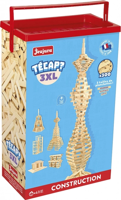 Otkrijte kreativni svijet gradnje s drvenim setom JEuJURA Técap 3XL s 300 dijelova od 100% prirodnog drva. Tri različite dimenzije letvica donose maksimalnu varijabilnost, zahvaljujući kojoj djeca razvijaju finu motoriku, kreativnost i logičko razmišljanje. Proizvedeno u Francuskoj od masivnog bukovog i borovog drva, obrađeno lakovima na bazi vode. Praktično pakiranje u kartonskoj kanti i inspirativne brošure s nacrtima građevina razveselit će male graditelje.