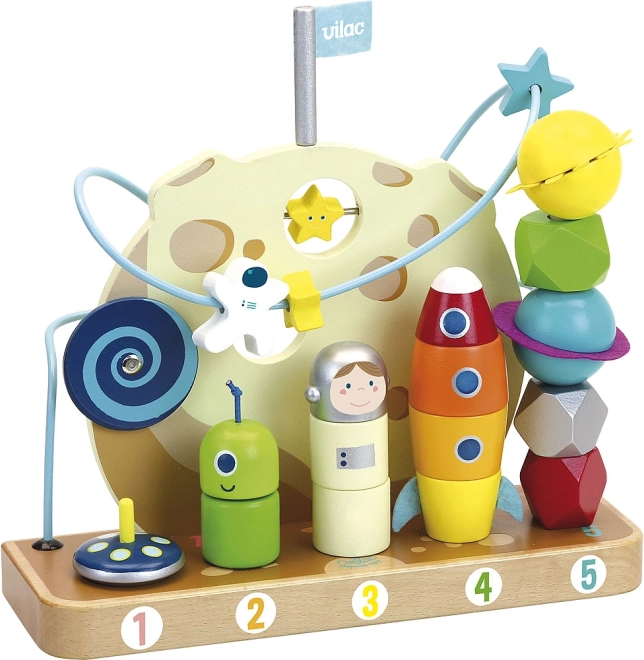 Ova zvjezdana drvena igračka Vilac vodi djecu u međugalaktički svijet, gdje mogu slagati planete, brojati i pomicati zvijezde po žici. Promišljeni elementi potiču razvoj fine motorike, logičkog razmišljanja i percepcije boja.