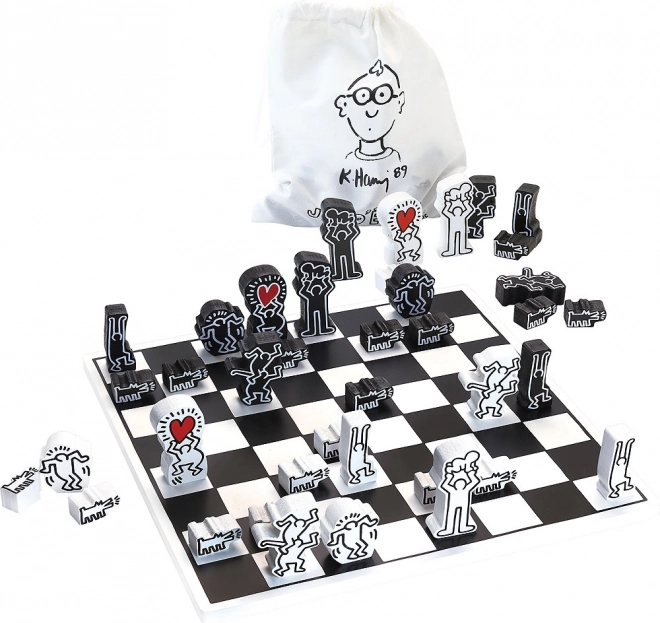 Otkrijte kultne drvene šahove s grafičkim dizajnom KEITH HARING – spoj klasične igre i moderné umjetnosti. Stilizirane crno-bijele figure s crvenim akcentima, kvalitetna izrada i praktična vrećica za pohranu čine ovaj set sjajnim poklonom i originalnom dekoracijom.