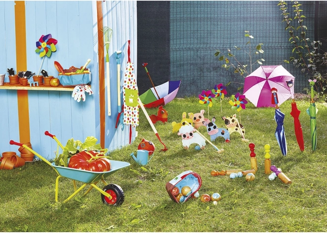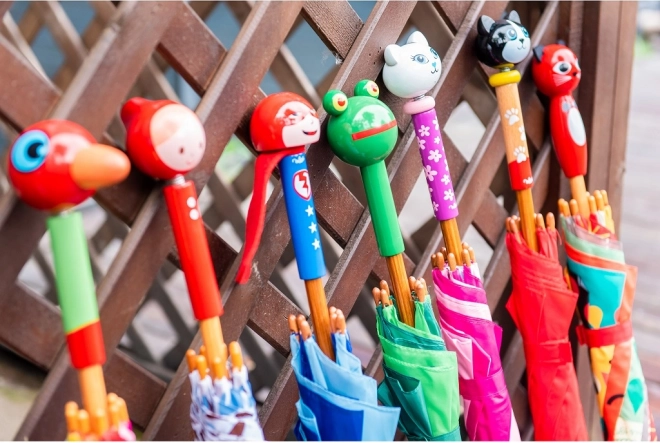 Uljepšajte djeci kišne dane veselim kišobranom ukrašenim pačićem. Kvalitetna izrada marke VILAC, šareni dizajn i sigurna konstrukcija čine ovaj dodatak praktičnim pratiteljem za put u vrtić i na igralište.