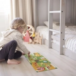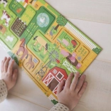 Zabavne i edukativne puzzle za najmlađe. Složite 10 velikih dijelova i krenite prstom kroz labirint diljem farme. Djeca tijekom igre razvijaju finu motoriku, koncentraciju i zapažanje dok traže 20 različitih predmeta na slici. Puzzle su izrađene od recikliranog papira i tiskane bojama na biljnoj bazi, ispunjavaju stroge sigurnosne standarde i idealne su za djecu od 2 godine.