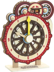 Drveni didaktički sat VILAC na zabavan način provodi djecu kroz svijet vremena. Analogni brojčanik nadopunjuje koturačni brojčanik koji oponaša digitalni prikaz i olakšava snalaženje. Obje kazaljke i brojčanik međusobno su povezani preciznim prijenosima, pa mehanika vjerno odgovara stvarnom satu – to pomaže boljem razumijevanju odnosa između minuta i sati.