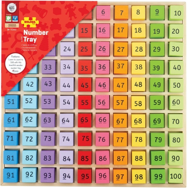 Bigjigs Toys donose zabavu i obrazovanje sa svojim drvenim brojevima u spremniku. Ova igračka namijenjena je djeci od 3 godine i idealna je za razvoj računskih vještina. Sadrži 100 komada, brojevi od 1 do 100 koji su šareno različiti, što podupire prepoznavanje brojeva i boja.