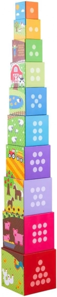 Didaktičke kocke s motivima farme pomažu djeci razvoju fine motorike i koordinacije ruka-oko pri učenju brojanja.