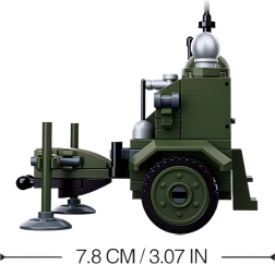 Otkrijte fascinantan vojni građevni set Sluban WWII, idealan za male graditelje od 8 godina naviše. Set sadrži 88 dijelova i jednu figuricu, s kojima možete izraditi model detektora mina zahvaljujući inovativnim funkcijama.