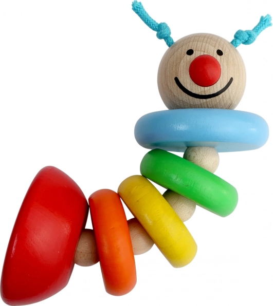 Ova šarena drvena gusjenica idealna je prva igračka za najmlađe. Zahvaljujući povezanim dijelovima na gumici lako se savija, uvija i vraća natrag, što motivira djecu na aktivno istraživanje i vježbanje koordinacije ruku i očiju. Kompaktna veličina savršeno pristaje dječjoj ručici.