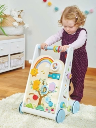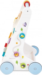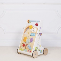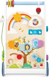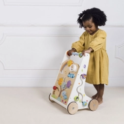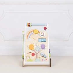 Drveno guralo s aktivnostima osmišljeno je tako da bude ne samo zabavno, već i edukativno. Uz njegovu pomoć djeca uče hodati i razvijaju svoje senzorne vještine.