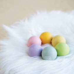 Pastelne drvene kuglice na elastičnoj gumici ugodno leže u ruci i pomažu olakšati osjetljive desni tijekom nicanja zubića.