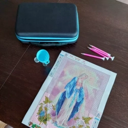 Ovaj praktičan set olakšava svakom ljubitelju dijamantnog slikanja organizaciju i samu izradu. Sve je sigurno pohranjeno u čvrstoj, izdržljivoj futroli s patentnim zatvaračem, uključujući pregledno smještene bočice u pjenastom umetku i mrežasti džep za dodatke. Zahvaljujući ovom rješenju, svi kamenčići i alati uvijek su vam pri ruci i savršeno razvrstani.