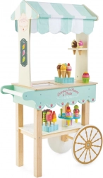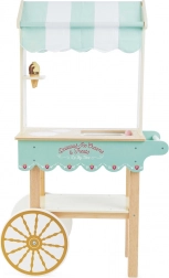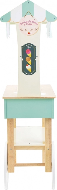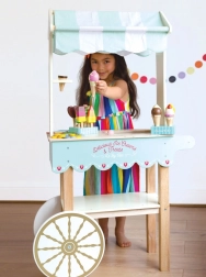 Premium kolica za sladoled izrađena su od visokokvalitetnog, održivo dobivenog drva i ručno dotjerana ekološkim bojama na bazi vode. Klasični prugasti baldahin, pastelne boje i zlatni detalji stvaraju jedinstven izgled koji će djecu osvojiti na prvi pogled. Zahvaljujući robusnoj konstrukciji i bezvremenskom stilu, idealna su igračka za svakodnevnu igru i za dijeljenje među braćom i sestrama.