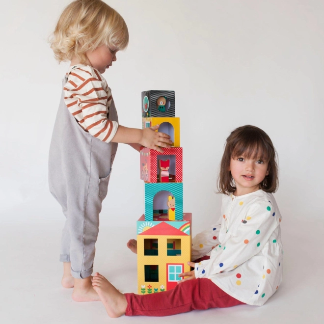 Ova pametna slagalica razvija dječju maštu, finu motoriku i prostornu percepciju. Djeca mogu slagati katove, otvarati vrata i prozore te se igrati s preslatkim drvenim prijateljima. Kad je vrijeme za odmor, sve se jednostavno uvuče jedno u drugo i spremi u glavnu kućicu s praktičnim magnetskim zatvaranjem.
