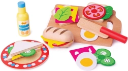 U setu se nalazi sve za pripremu ukusnog sendviča: baget, kriške kruha, majoneza, salata, krastavac, sir, jaje i rajčica, nadopunjeno tanjurom, daskom i nožem. Materijali potječu iz odgovornih izvora i igračka ispunjava europske sigurnosne norme, tako da se na nju možete osloniti.
