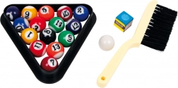 Dio paketa sadrži sve što je potrebno za početak igre: dva štapa, kugle, trokut i kreda. Ovaj mini stol je dizajniran tako da pruža realističan doživljaj na maloj površini.