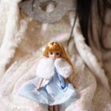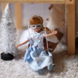 Lutka je obučena u lijepe plave haljine s ledenim detaljima i srebrnim pahuljama. Sanja o čarobnom balu kao Snježna kraljica.