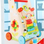 Drveno dječje guralo Cvjetna livada osmišljeno je kako bi pomoglo djeci razvijati njihove motoričke vještine i razumijevanje svijeta oko sebe. Sadrži: