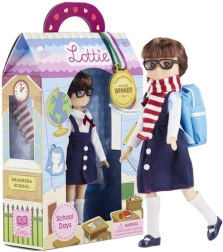 Lottie lutka školarica s dodacima je simpatična zglobna lutka visine 18 cm, koja potiče maštovitu igru i gradi samopouzdanje. Izrađena je od sigurnog vinila bez ftalata, ima mekanu najlonsku kosu, stoji samostalno, ima odvojive cipele, a u kompletu su ruksak, naočale i kartice sa savjetima za vođenje. Prikladna od 3 godine.