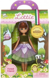 Uđite u čarobni svijet s lutkicom Lottie Šumska vila. Njezina višeslojna haljina u nijansama zelene i ljubičaste, baršunasti top i nježna tutu suknja nalik laticama pretvaraju svaku igru u priču punu mašte. Riđa kosa, zelene oči i zlatne balerinke zaokružuju bajkovit izgled.