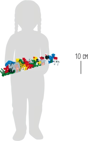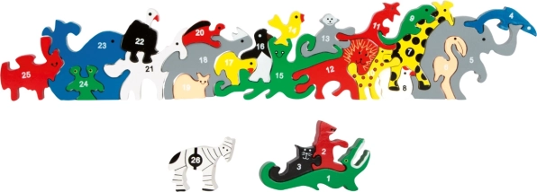 Sastoji se od 26 dijelova, svaki predstavlja neku životinju i označen je brojem na jednoj strani te slovom abecede na drugoj strani. Podržava finu motoriku i razvija kreativno razmišljanje.