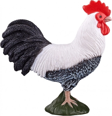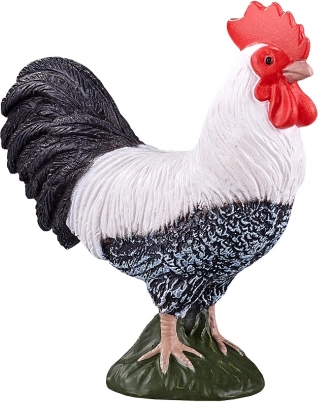 Vjerno oblikovano perje, kontrastno crno-bijelo obojenje i crveni krijesta za autentičan izgled pijetla.