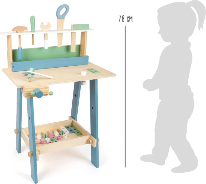 Izdržljiva drvena konstrukcija s funkcionalnim elementima i spremištem za alat osigurava sigurnu i preglednu igru.