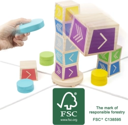 Uživajte u dinamičnoj zabavi s obitelji i prijateljima. Ova drvena igra spretnosti u Kubb stilu oduševljava jednostavnim pravilima i napetim tijekom – zadatak je srušiti samo gornju kocku s izgrađenog tornja obojenim diskovima. Zahvaljujući kvalitetnoj izradi od 100% FSC drva igra je izdržljiva, sigurna i štedljiva prema prirodi.