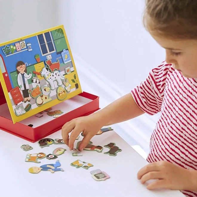 Tražite savršenu igračku za male ljubitelje životinja? Magnetička igra: Veterinarska klinika idealan je izbor! Ova igra sadrži dvije magnetne ploče i 50 magnetnih dijelova koji djeci omogućuju stvaranje vlastitih priča i scena. Praktična sklopiva kutija olakšava pohranu i brzo pospremanje dijelova.