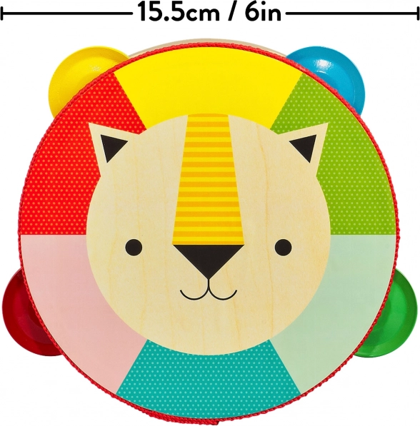 Ova kvalitetna drvena tamburina od topolove šperploče razveselit će male glazbenike i njihove roditelje. Lako i udobno držanje, sigurne biljne boje i lak na bazi vode osiguravaju bezbrižnu igru. Veseo lavlji motiv i izražajne boje podupiru osjećaj za ritam, prepoznavanje boja i motoričke vještine.
