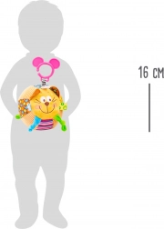 Praktični remenčić omogućuje brzo pričvršćivanje na kolica, autosjedalicu ili baby gym. Mekano plišano izvođenje nježno je prema osjetljivoj koži, a veličina je idealna za male ručice.