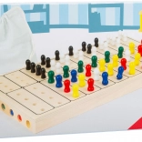 - Tabla i štapići: Igra se sastoji od drvene ploče s rupama i obojenih štapića koji nude različite kombinacije boja.