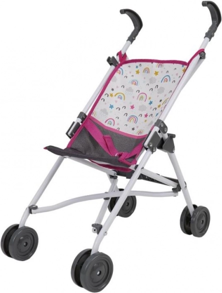 Vesela i praktična kolica za lutke tipa kišobran u duginom dizajnu razveselit će svaku malu mamu. Prikladna su za lutke do oko 46 cm, imaju visinu rukohvata oko 54 cm i zahvaljujući sklopivoj konstrukciji lako se prenose i odlažu. Idealna za djecu od 3 godine.