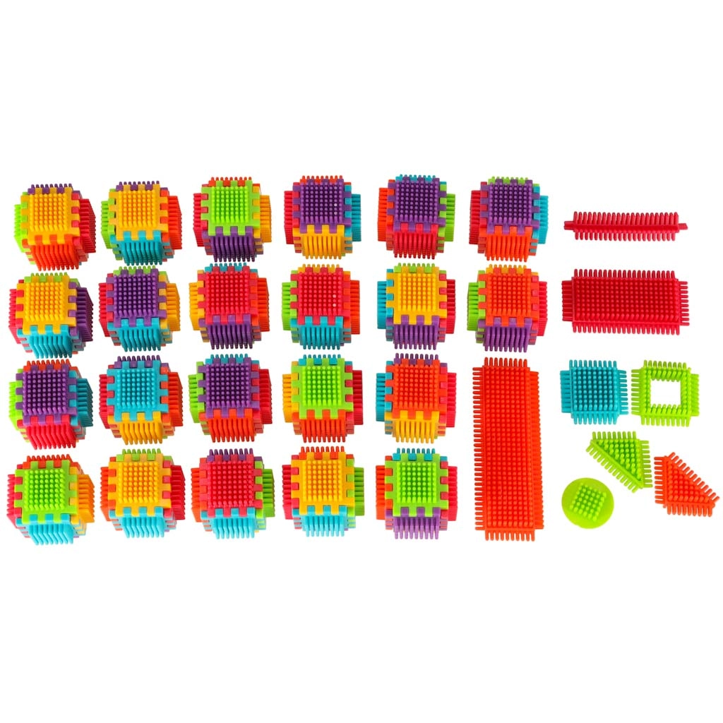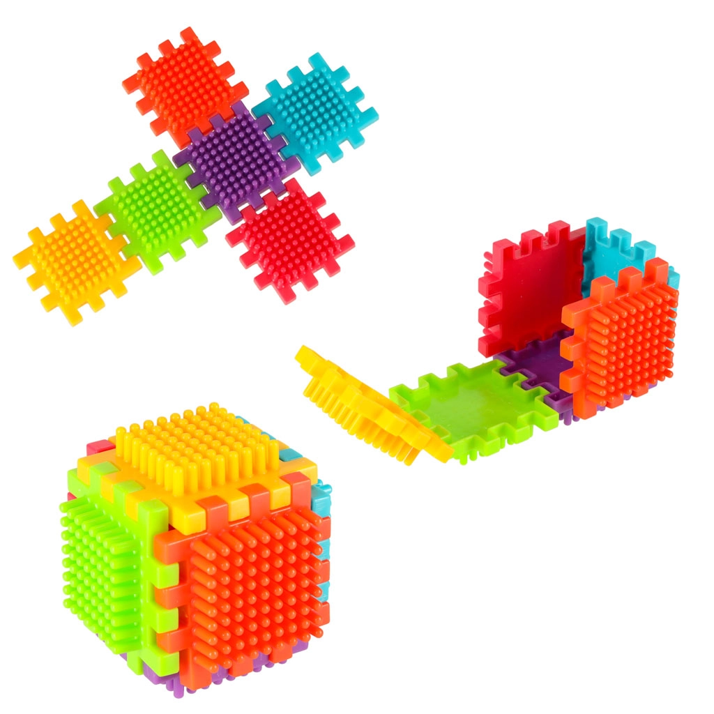 Blokovi su izrađeni od kvalitetne plastike, vrlo su lagani, fleksibilni i ujedno izuzetno izdržljivi. Pomažu pri učenju novih oblika i boja te razvijaju manualne vještine. Blokovi su dizajnirani tako da stimuliraju djetetova osjetila u razvoju: vid zahvaljujući izrazitim bojama i dodir zahvaljujući originalnom obliku i načinu spajanja. Blokovi koji pružaju sjajne mogućnosti za kreativnu igru! Osim tradicionalnog kombiniranja kao kod uobičajenih blokova, ove blokove možete spajati i cijelom plohom stranice, čime dobivate dodatnu mogućnost izrade. Mogu se koristiti za gradnju zgrada, robota i drugih konstrukcija!
