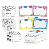 Ovaj kreativni set osmišljen je kako bi djeci pomogao otkriti svijet crtanja na zabavan i privlačan način putem omiljenih likova. Sadrži četiri ploče koje se mogu brisati i šareni blok zadataka koji će djeci pružiti sve potrebno za razvoj njihovih vještina.