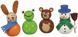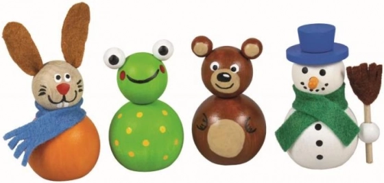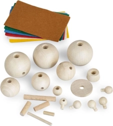 Uz ovaj kreativni set djeca će lako sastaviti i ukrasiti do tri originalne drvene figurice. Pojedinačni drveni dijelovi lijepe se običnim bijelim ljepilom za drvo i papir te se boje vodotopivim bojama ili trajnim flomasterima. Zahvaljujući jednostavnom postupku i priloženim uputama, stvaranje je zabavno i pregledno.