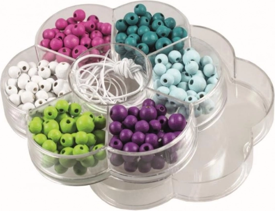 Kreativni set drvenih perlica u pastelnim bojama za najmlađe kreativce. Djeca će pri nizanju vježbati finu motoriku, strpljenje i kreativnost. Savitljive i elastične špagice osiguravaju lako nizanje i sigurnu igru. Set je prikladan od 3 godine i ispunjava sigurnosne norme EU.
