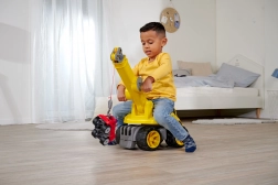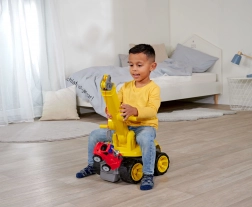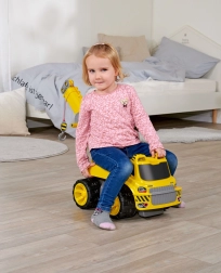 Za ugodno upravljanje tu su dvije praktične ručke na kabini, dok prednja i stražnja zaštita od prevrtanja povećavaju sigurnost tijekom vožnje. Metalne osovine i meke gume koje ne ostavljaju tragove jamče glatku vožnju po podovima u interijeru, kao i vani na igralištu ili u vrtu.