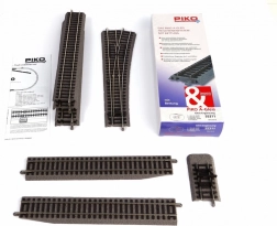 Ovaj PIKO set kolosiječne opreme za H0 nudi vjerno izvedene drvene pragove na šljunčanoj podlozi u realističnim bojama. Zahvaljujući desnoj jednostavnoj skretnici sa slijepim kolosijekom lako ćete izraditi odstavni kolosijek za lokomotive ili garniture. Skretnicom se upravlja ručno, a pripremljena je za ugradnju daljinski upravljanog motorčića skretnice (dostupan zasebno), uključujući pripremljen priključak.