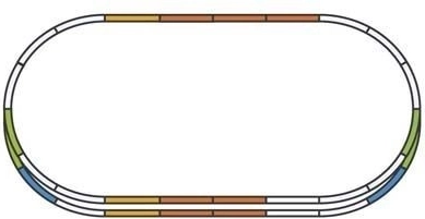 Set E proširuje osnovni krug za paralelni ravni dio i dvije zavojne skretnice, idealno za pretjecanja i raznolikiji promet.