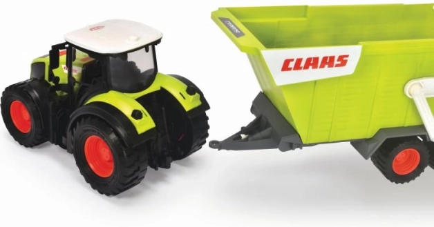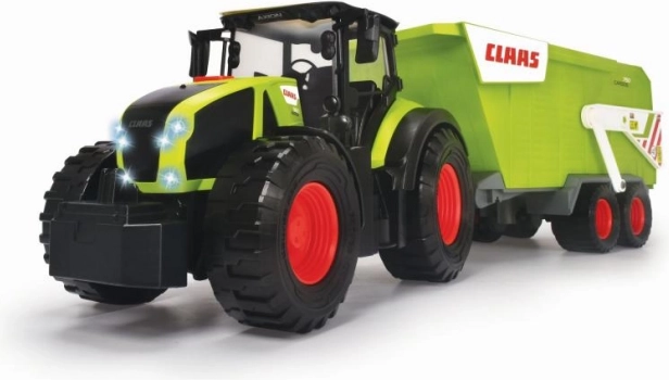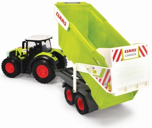 Traktor na slobodan pogon, interijer, kiperska prikolica, svjetlosni i zvučni efekti, pokretni dijelovi. Duljina 64 cm.