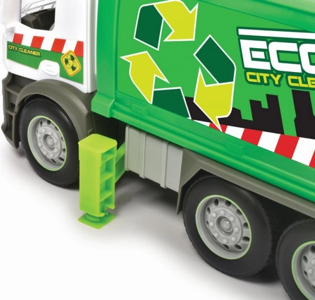 Stražnju kipersku karoseriju lako podignete i istresete sadržaj. Pokretni dijelovi potiču motoriku i uče djecu principima rada smetlarskog kamiona.