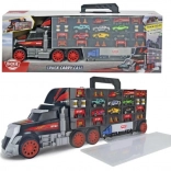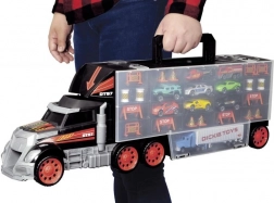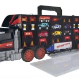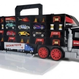Veliki kamionski kofer spaja spremnik i set za igru u jednom. Otvorivi pretinci prime cijeli set vozila i dodataka, a praktična ručka olakšava nošenje. Ručni launch mehanizam u kabini pretvara kamion u trkaću stazu i brine se za dinamične startove.