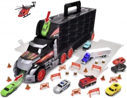 Veliki kamionski kofer s ručkom za lako nošenje skriva bogat set za igru – 7 metalnih autića, teretni kamion i helikopter. Zahvaljujući ručnoj izbacivačkoj funkciji iz kabine djeca mogu pokrenuti utrku u sekundi. Robusna izvedba i duljina 62 cm jamče puno zabave te praktično spremanje i organizaciju kolekcije.