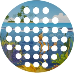 Ploča promjera 22 cm izrađena je od izdržljivog drva i dopunjena papirnatom podlogom s motivom oceana. Bogat set elemenata omogućuje različite varijante igre – od pecanja riba preko premještanja kuglica do natjecanja na vrijeme.